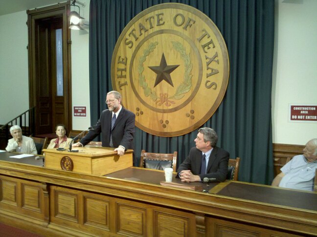 TMN’s Scott Cobb moderated the press conference. Speakers were David Powell’s lawyer Richard Burr (photo left); Sissy Farenthold; Jude Filler; David Powell’s uncle Clemens Struve; and Walter Long.