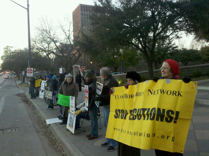 Cleve Foster received a last minute stay of execution from U.S. Supreme Court today (Read court order here). More than 60 people gathered at the Texas Capitol to protest the execution rejoiced at the news received from a phone call from other protesters gathered in Huntsville.