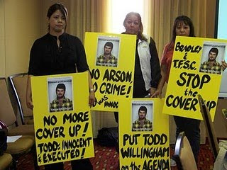 John Bradley, Rick Perry’s hand-picked puppet/chair of the Texas Forensic Science Commission, today tried to continue his cover up of the investigation into whether Texas used faulty forensic science to convict and execute Todd Willingham. He violated the Texas Open Meetings Act by telling a film crew they could not attend and film the meeting of the Texas Forensic Science Commission. Bradley does not understand his responsibilities enough under Texas law to act as chair of the Texas Forensic Science Commission. A county attorney should know about the Texas Open Meetings Act. He probably did know about it, but chose to violate it until the Texas Attorney General advised him to stop violating it.